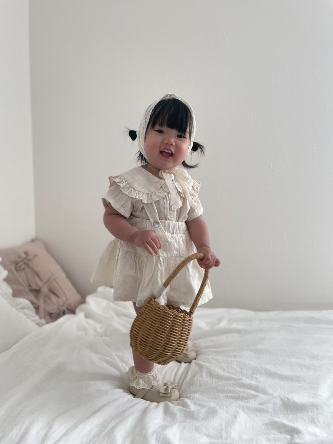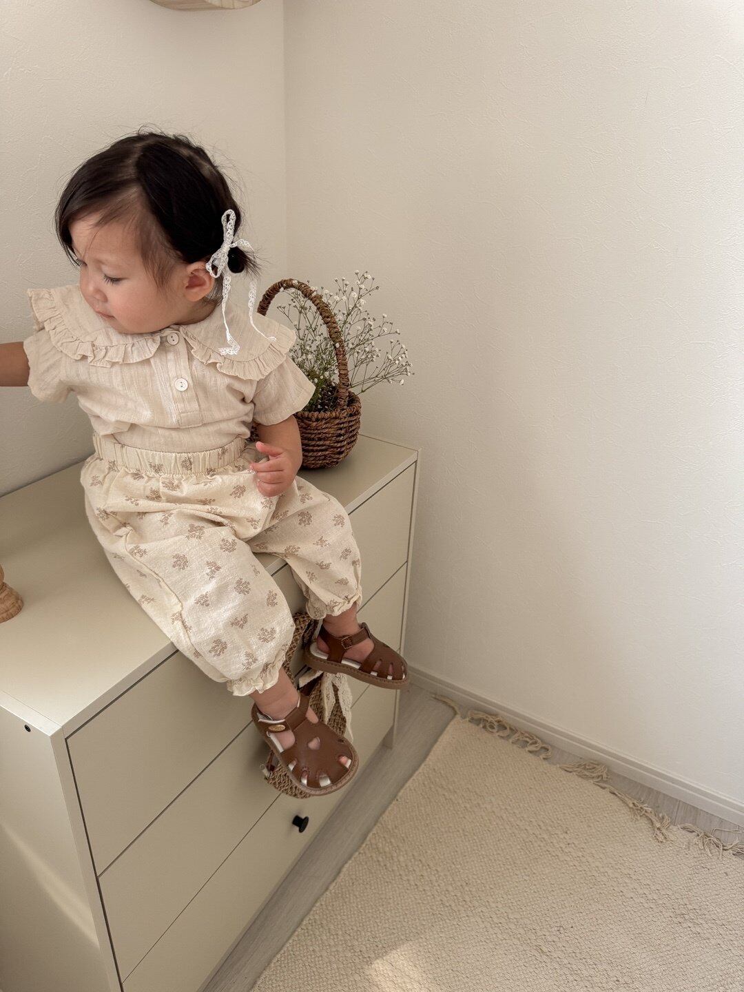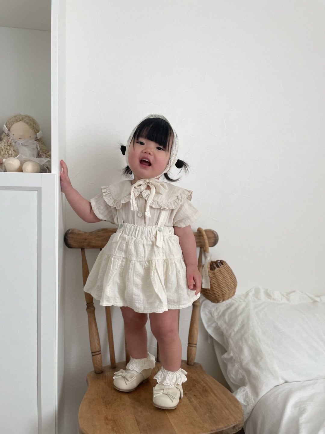 [mimimarket] ove blouse short sleeves [color] white / beige [size] 1size(6~12m) 70~80cm 2size(12~18m) 80~85cm