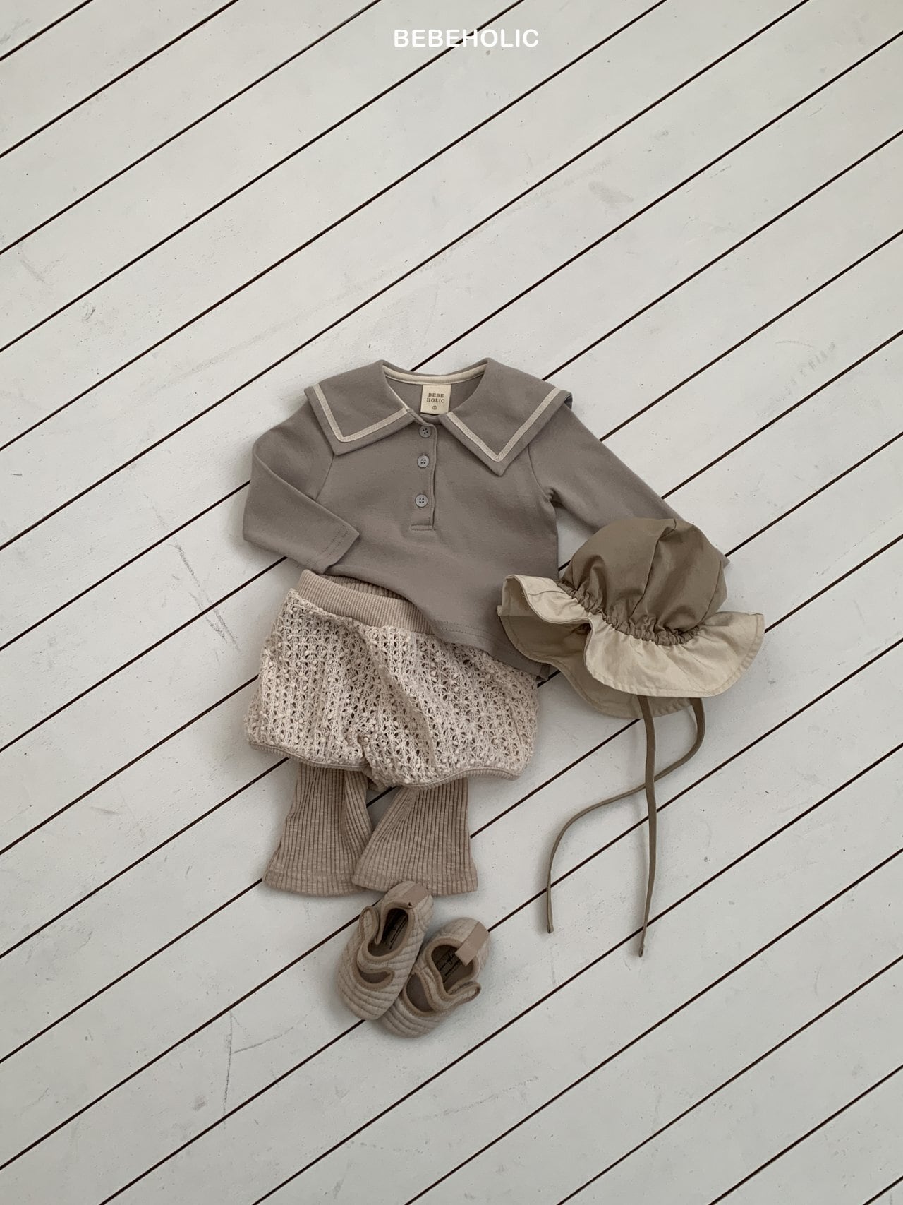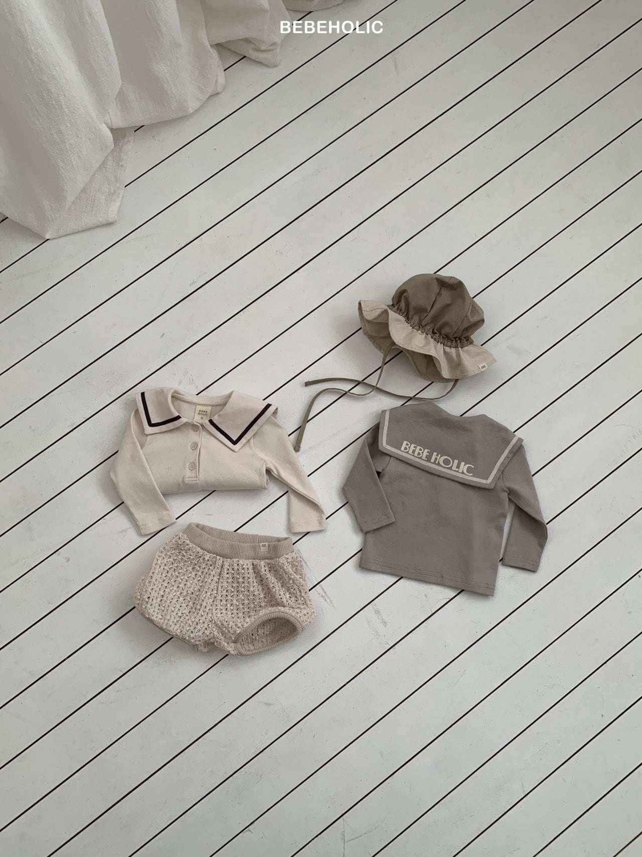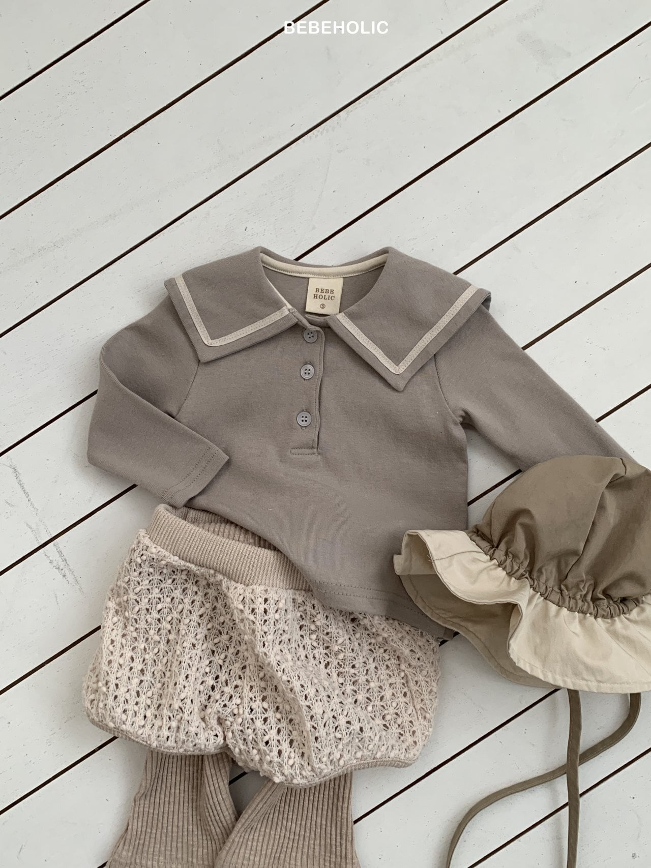 [bebeholic] bebe sailor tee [color] gray / cream [size] M(6~12m) 70~80cm L(12~18m) 80~90cm