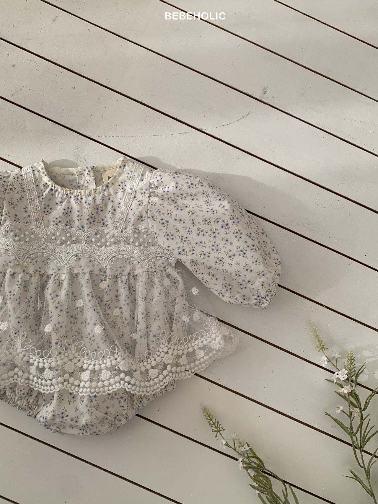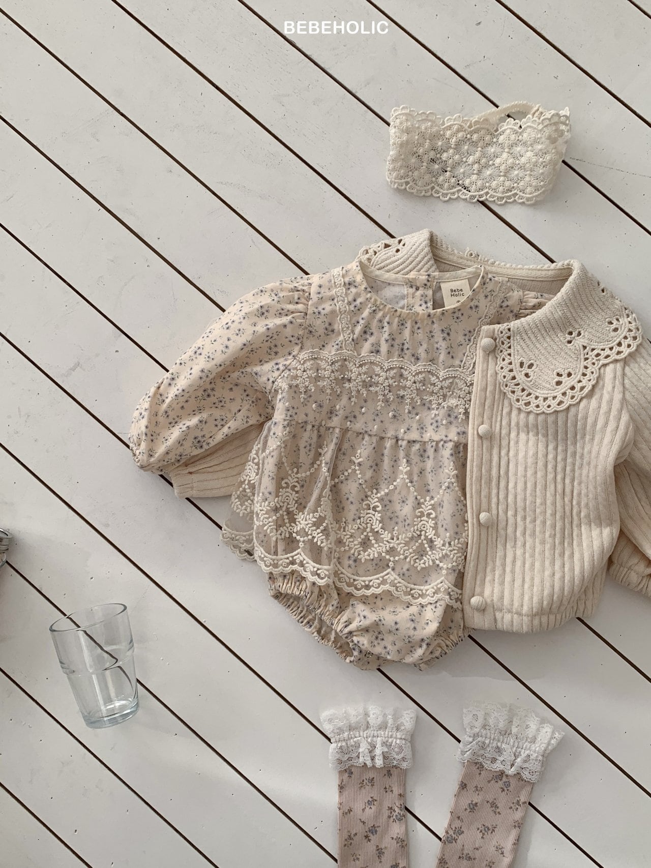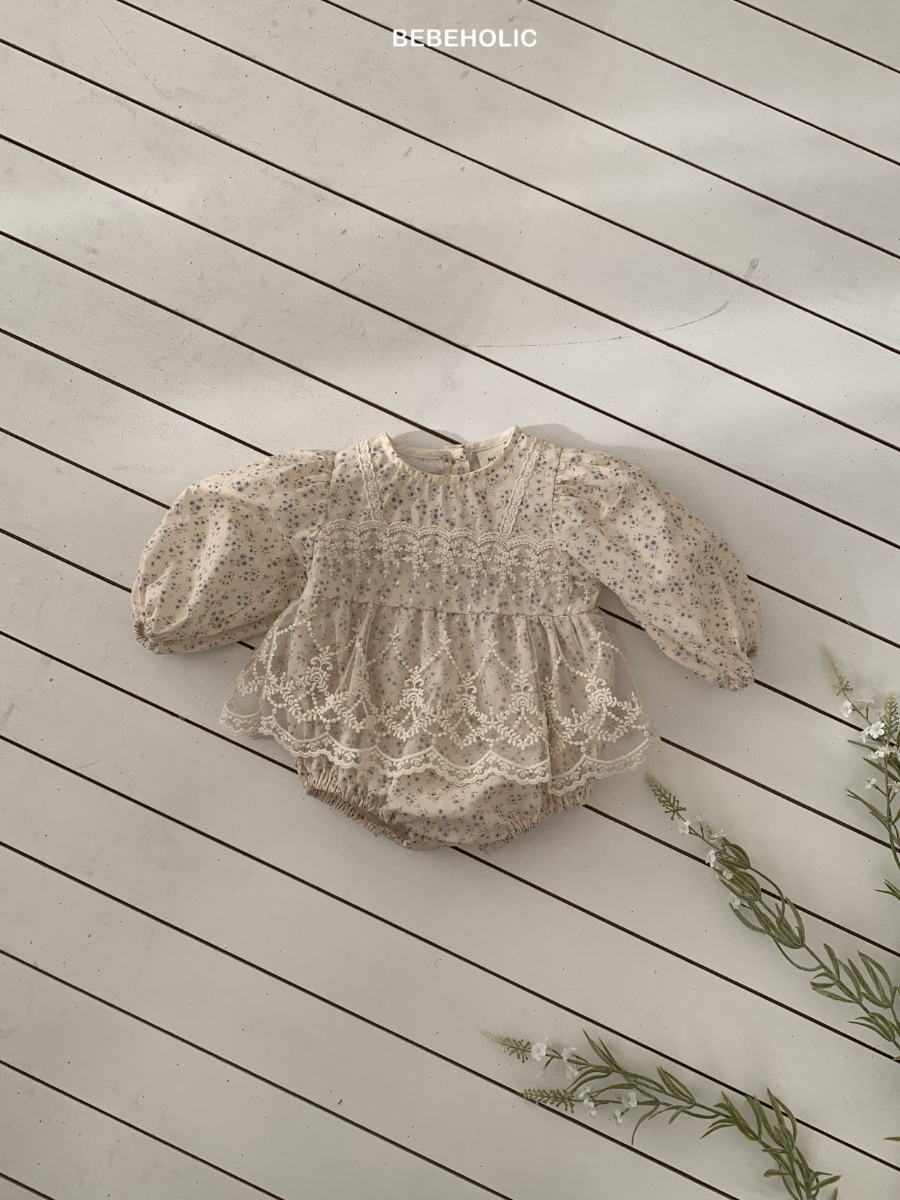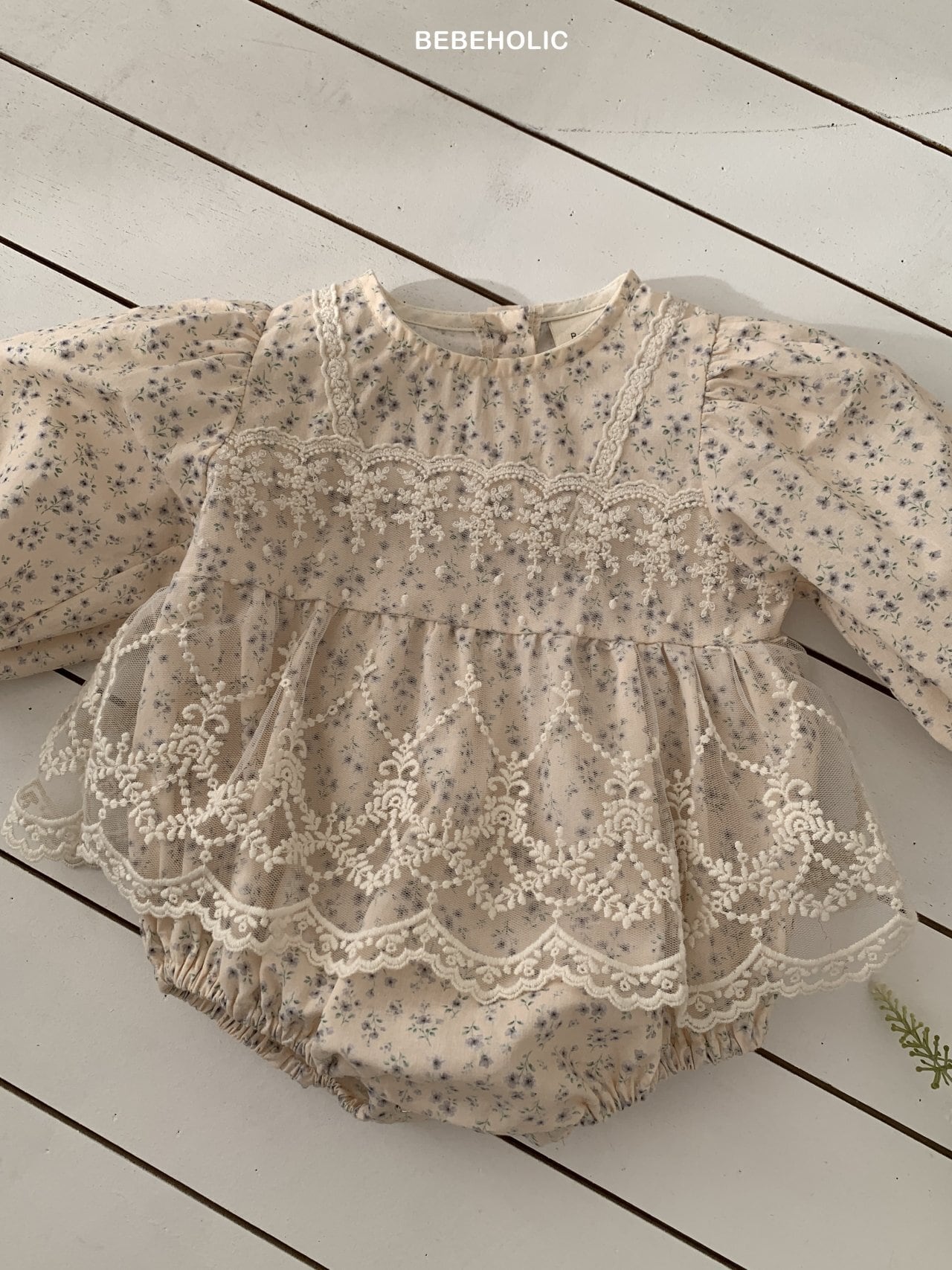 [bebeholic] rip lace suit [color] white / beige [size] S(3~6m) 65~70cm M(6~12m) 70~80cm