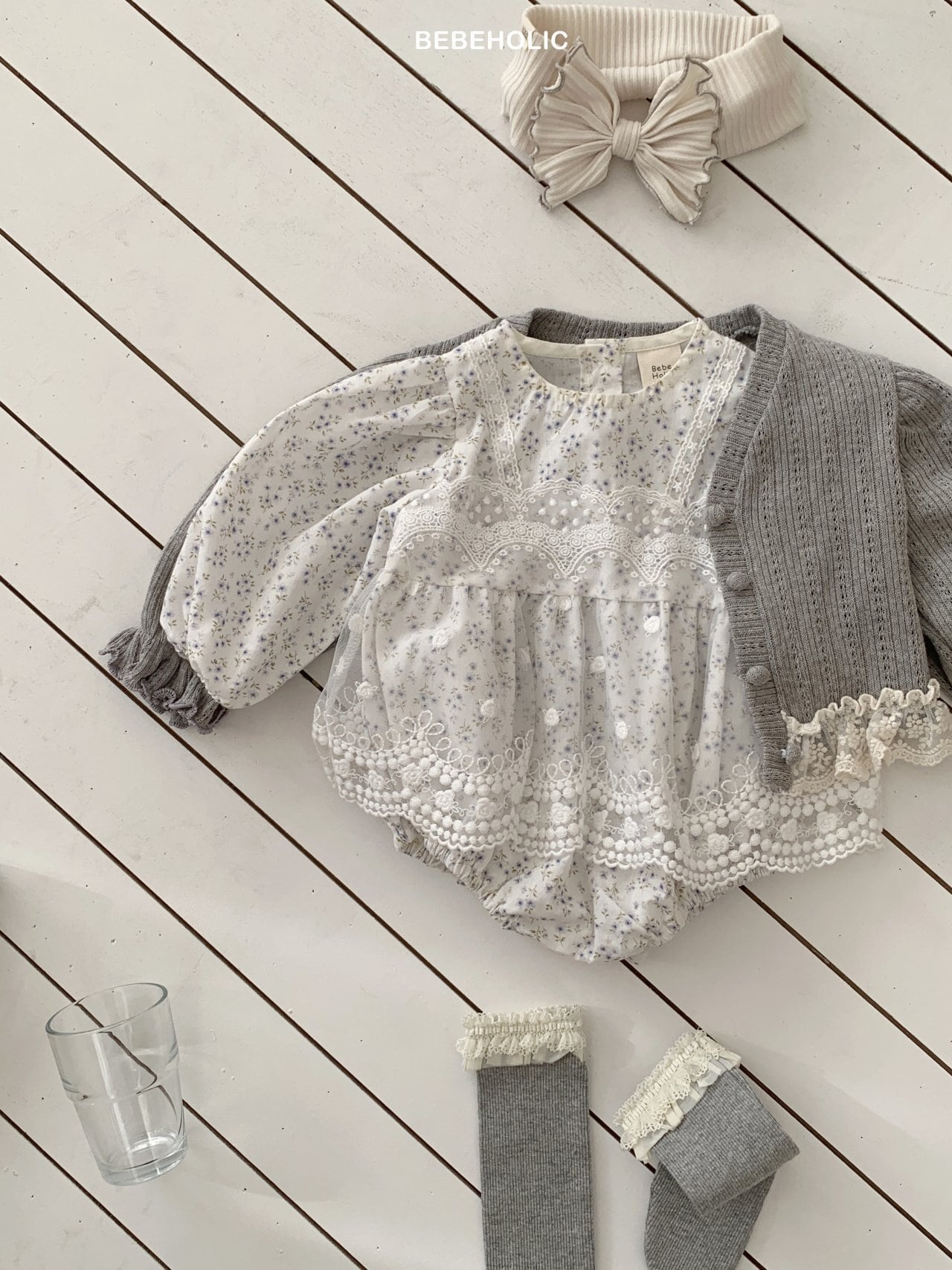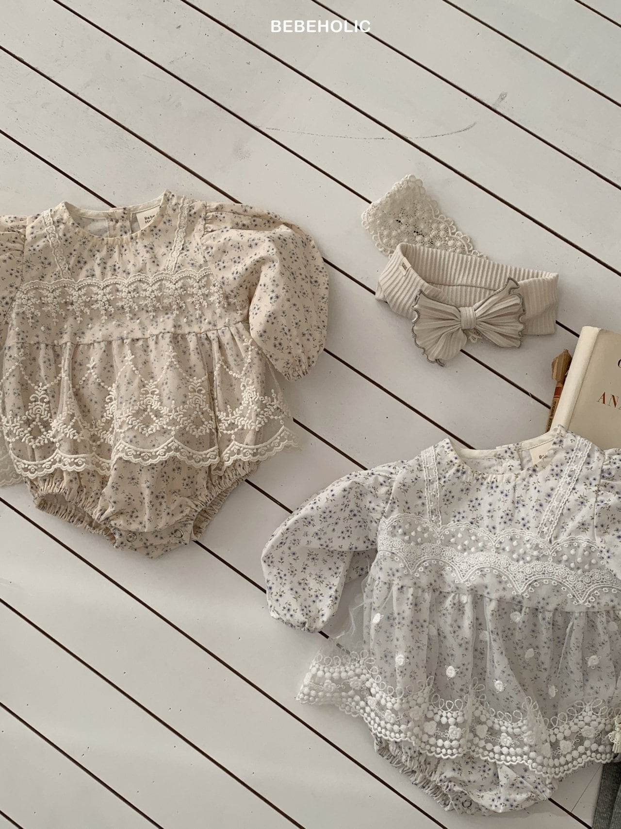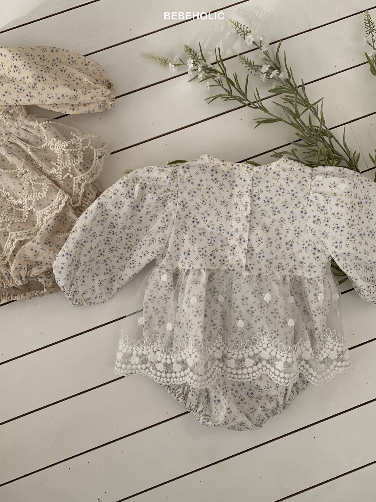[bebeholic] rip lace suit [color] white / beige [size] S(3~6m) 65~70cm M(6~12m) 70~80cm