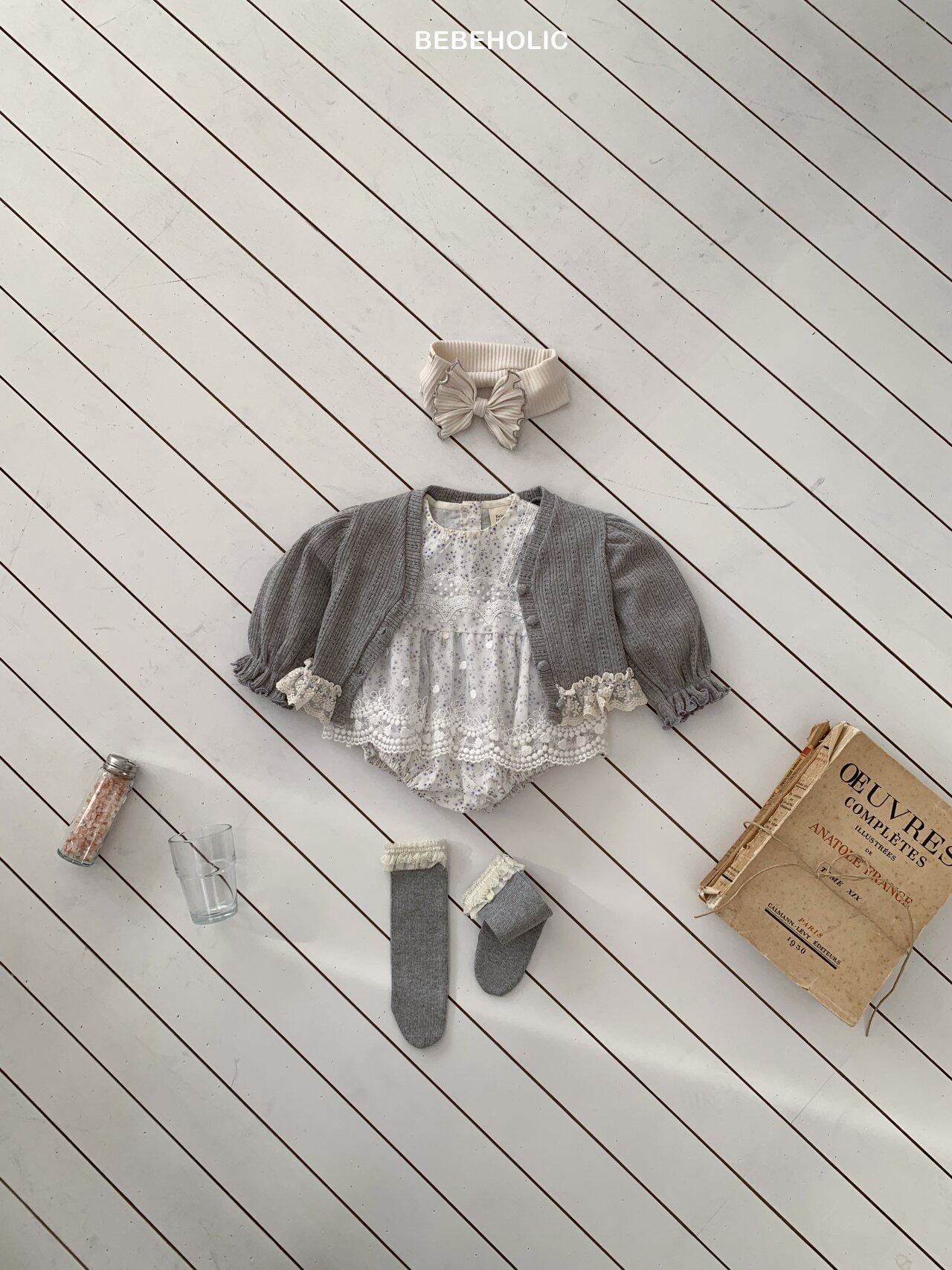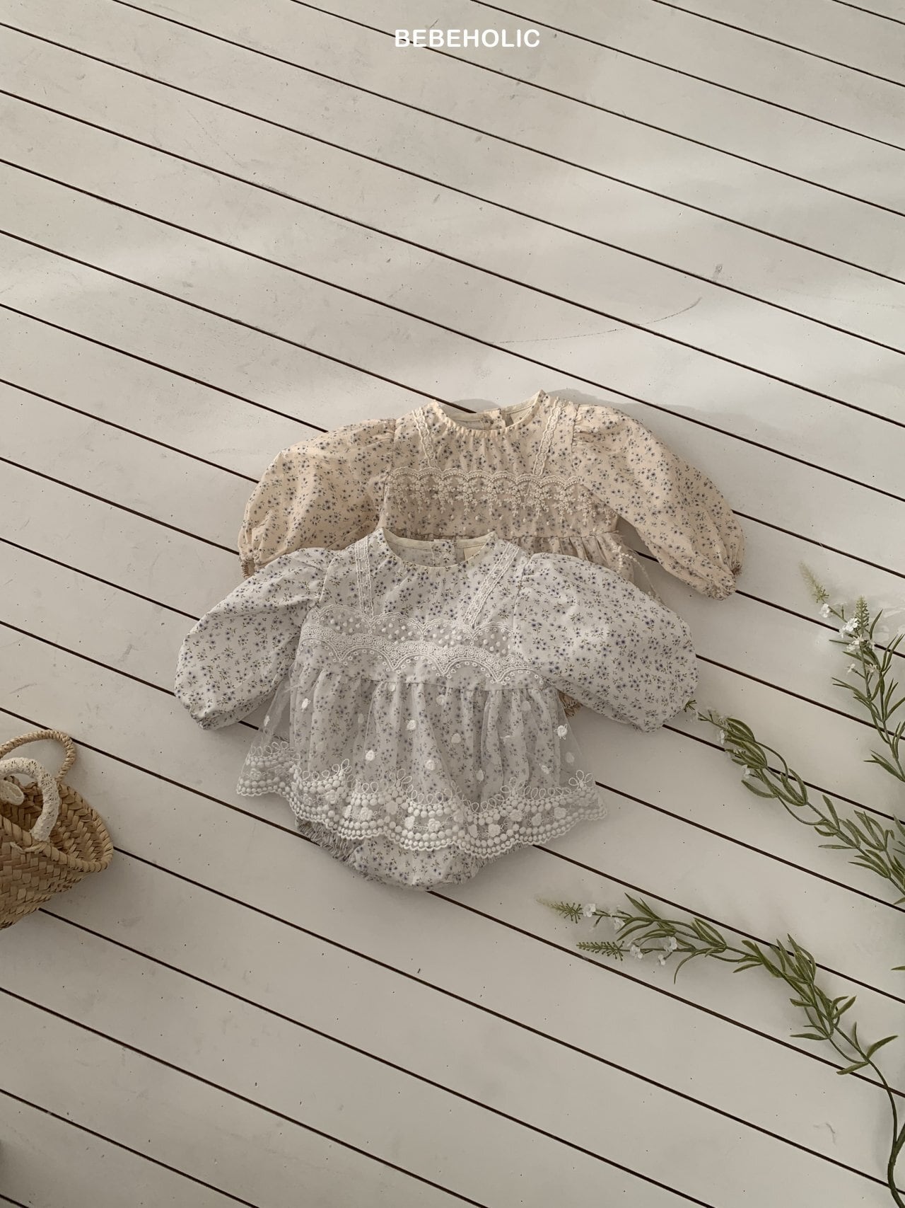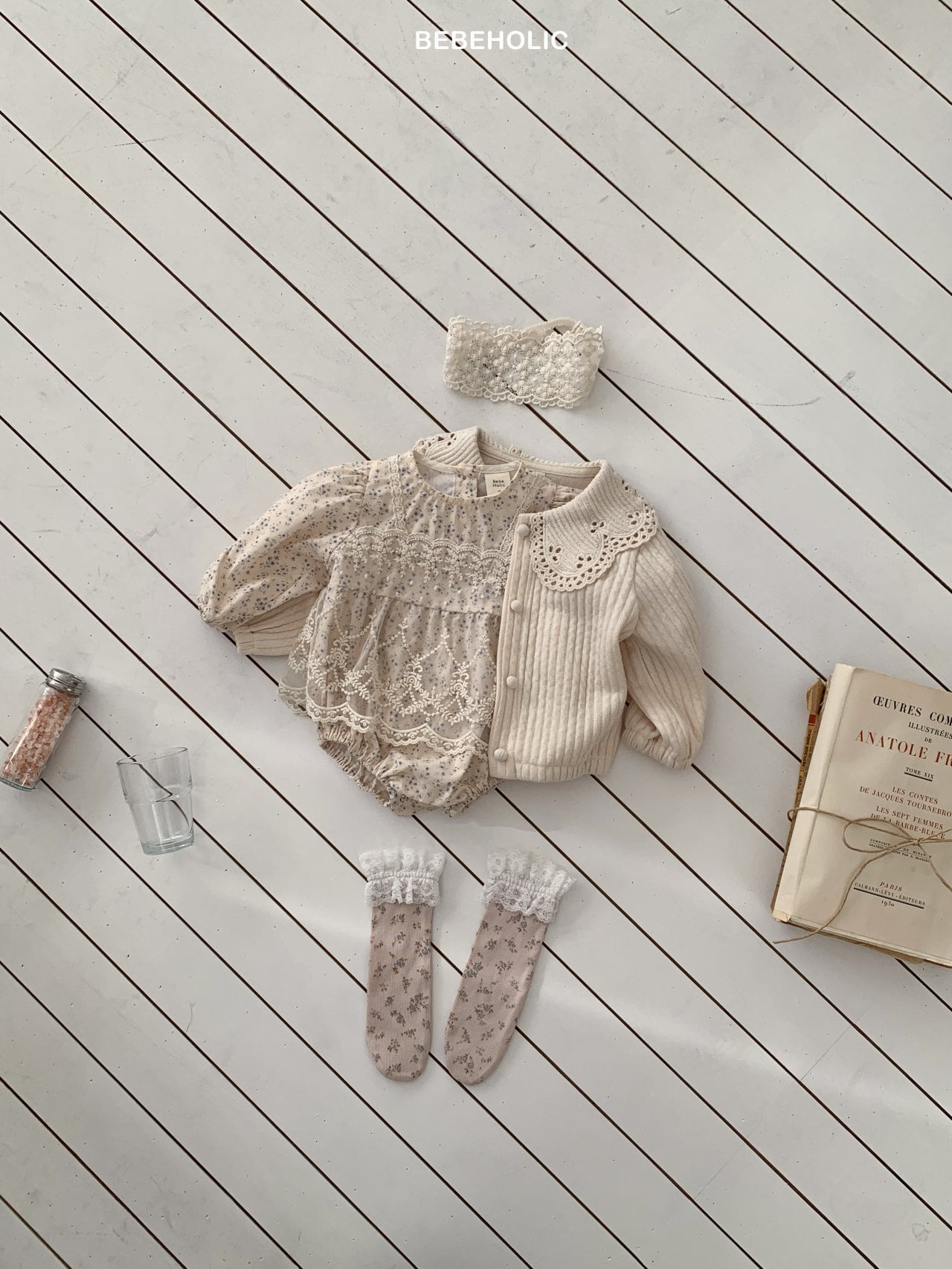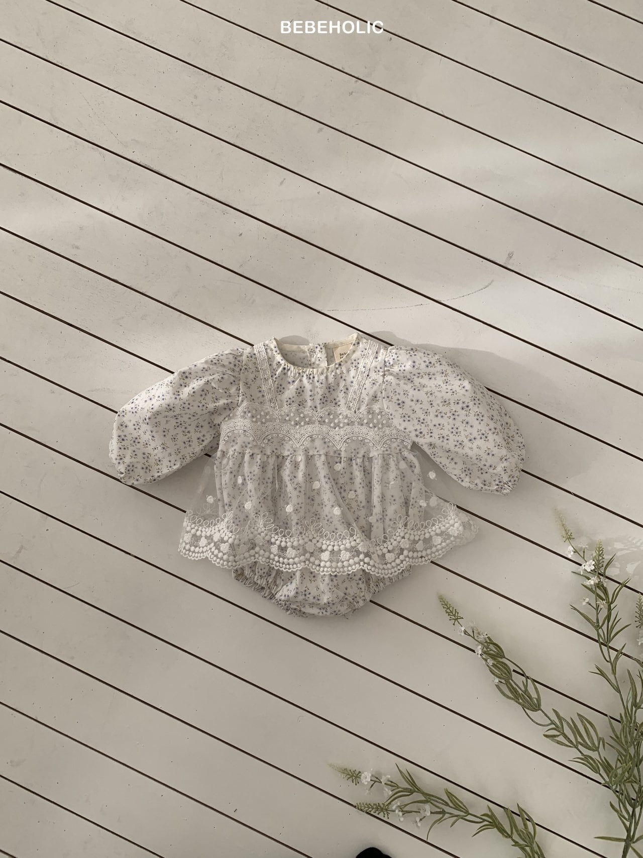 [bebeholic] rip lace suit [color] white / beige [size] S(3~6m) 65~70cm M(6~12m) 70~80cm