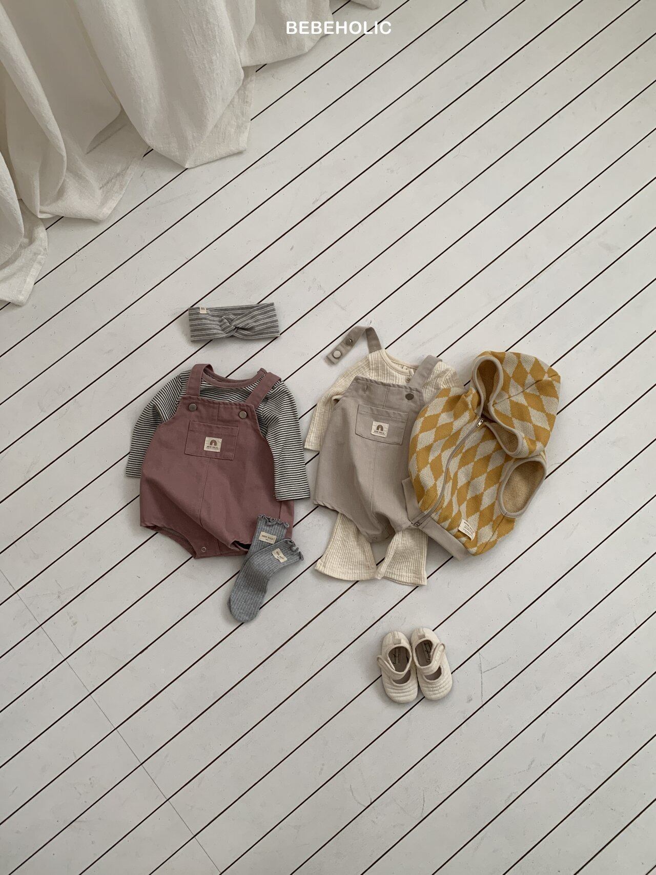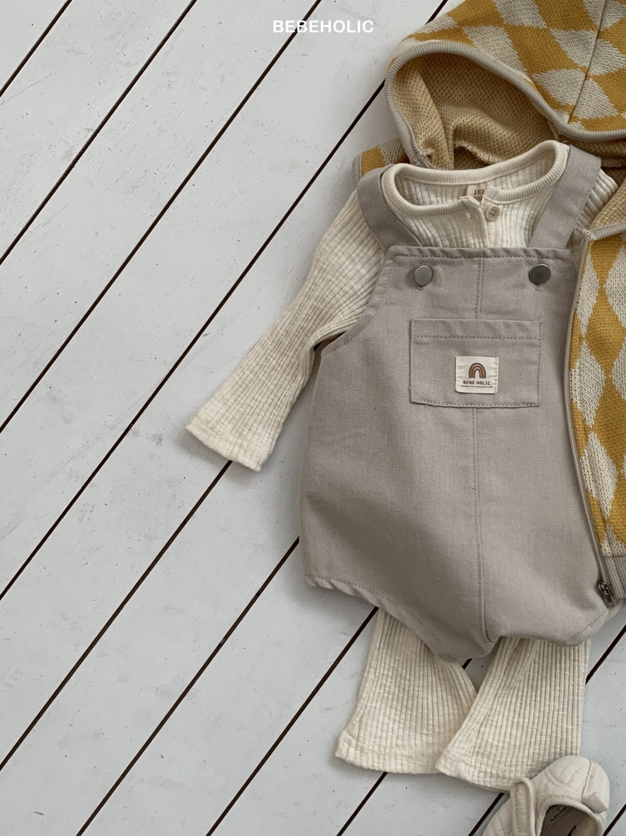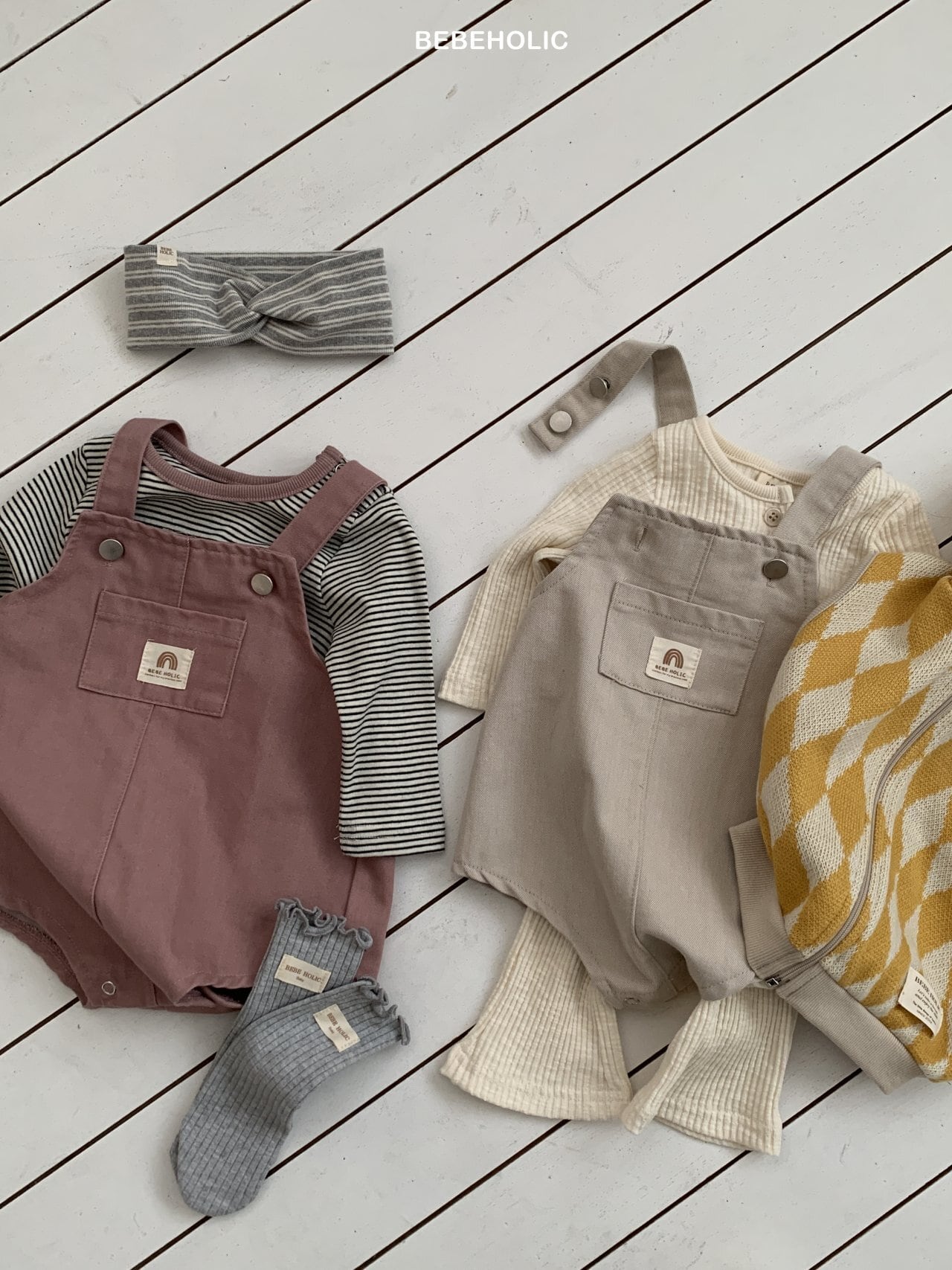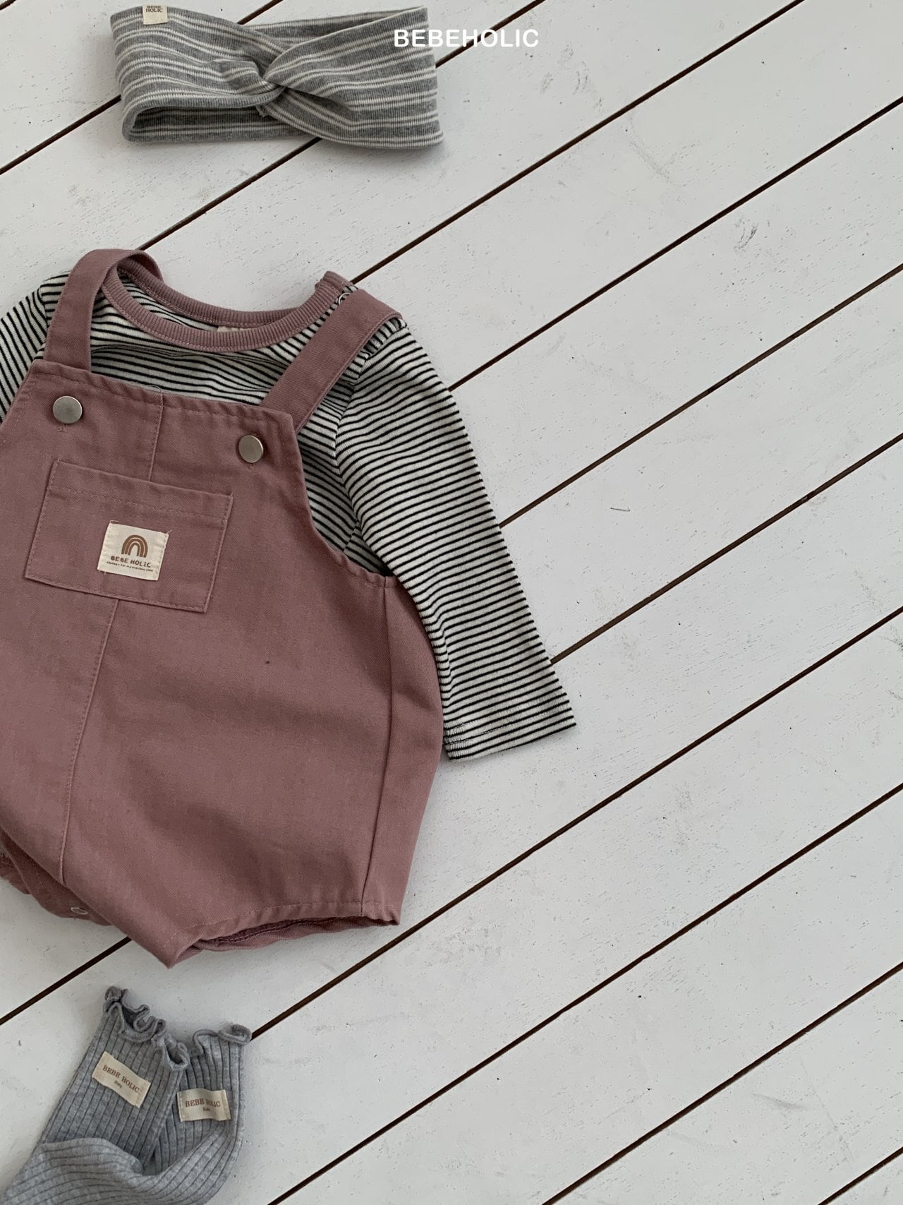 [bebeholic] lego suspender suit [color] beige / pink [size] S(3~6m) 65~70cm M(6~12m) 70~80cm L(12~18m) 80~90cm