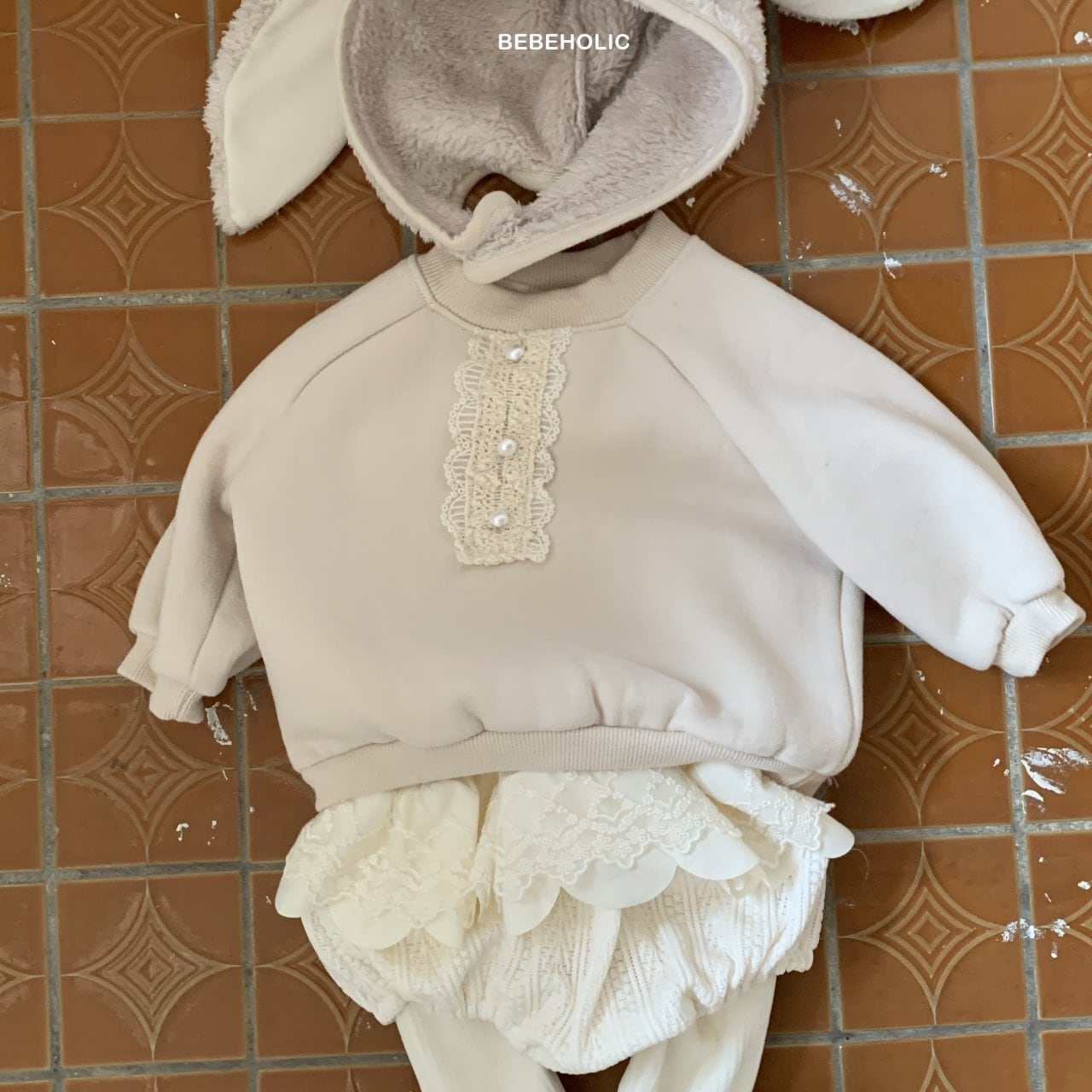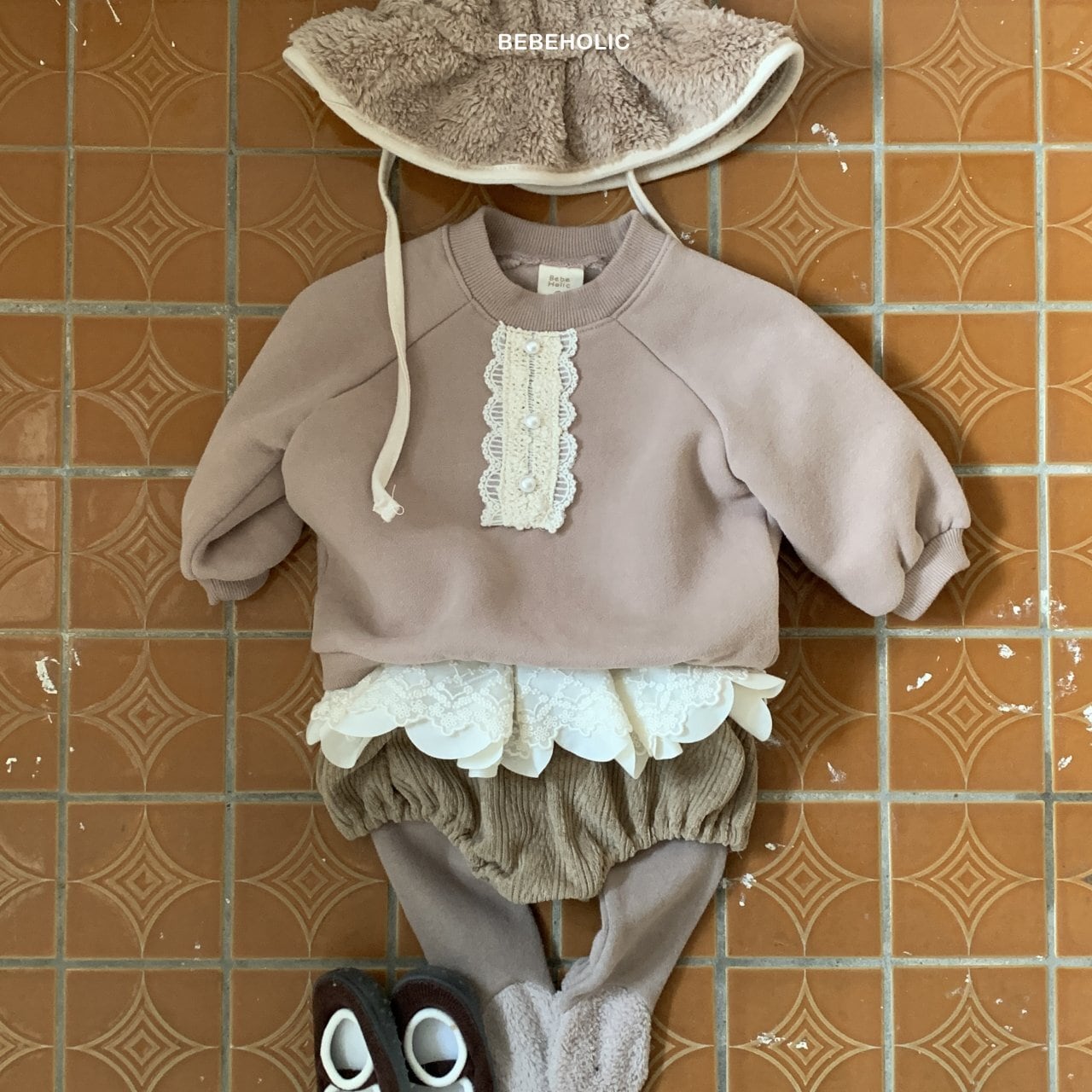 [bebeholic] shasha mtm [color] cream / brown [size] M(6~12m) 70~80cm L(12~18m) 80~90cm 裏起毛で暖かいです。